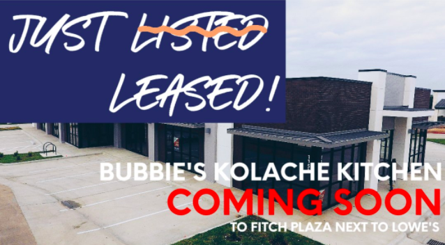 Bubbie’s Kolache Kitchen and Bakery is coming to south College Station, TX. The new kolache shop will be located in a new strip center near TaD’s and Lowe’s on William D. Fitch.