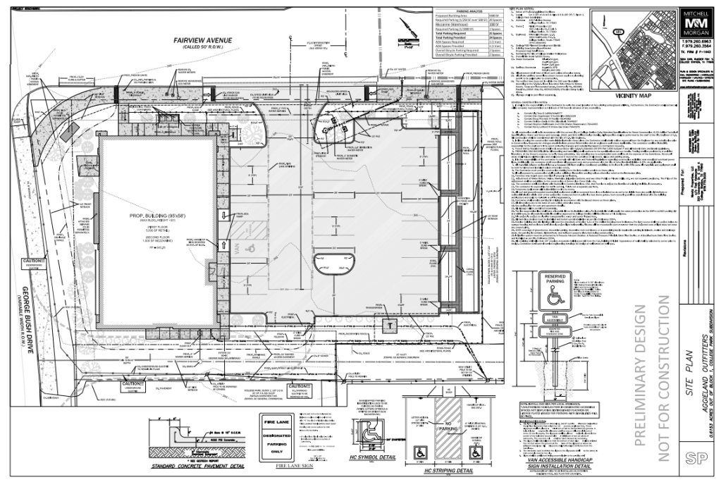 Aggieland Outfitters has submitted a site plan to the city of College Station for a new 6,500 square-foot store at George Bush Drive and Fairview Avenue. The planned store will have 5,500 square-foot first floor and a 1,000 square-foot mezzanine. Aggieland Outfitters has been a leader in the Aggie gifts business since 1992. From dresses, t-shirts, polos, and caps, to tailgating supplies, office decorations, and kids clothing, if it’s Texas A&M related, they’ve either got it, or we’ll get it. They take pride in providing the latest in fashion, service, and unique products.