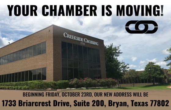 On Friday, October 23rd the B/CS Chamber of Commerce moved to its new home! Their new address is 1733 Briarcrest…